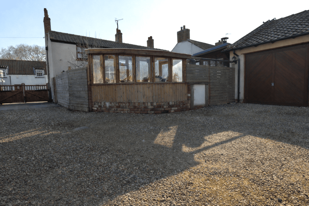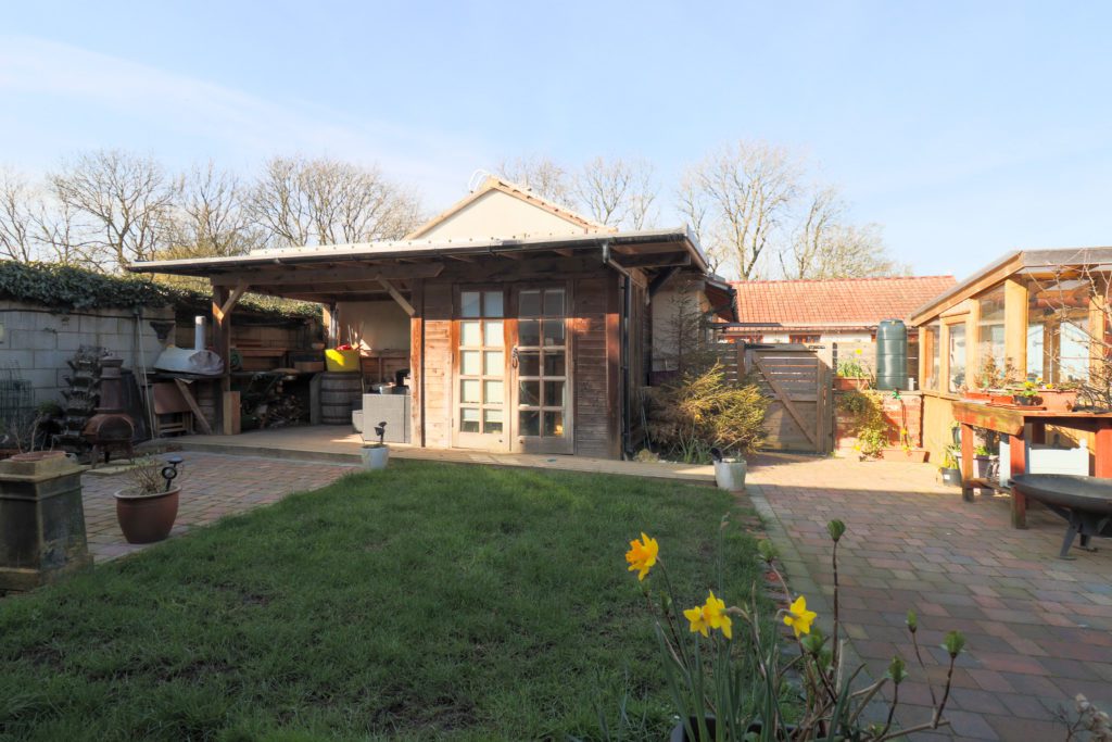 Double gates and drive to GARAGE with light and power. Lawn and patio. Large WORKSHOP / STORE. POTTING SHED.