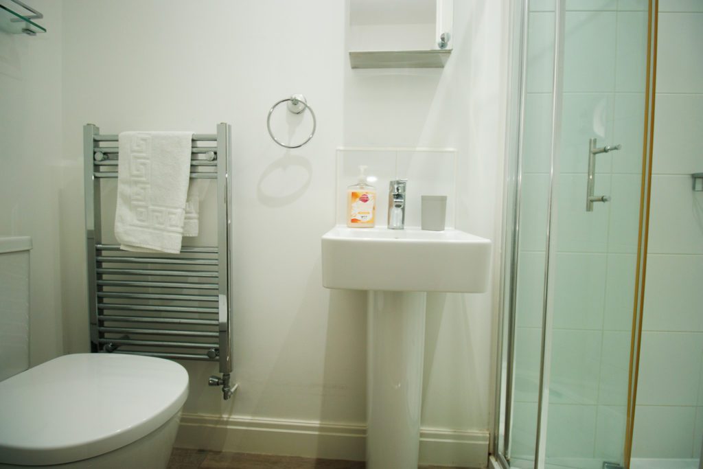 Modern kitchen and bathroom.