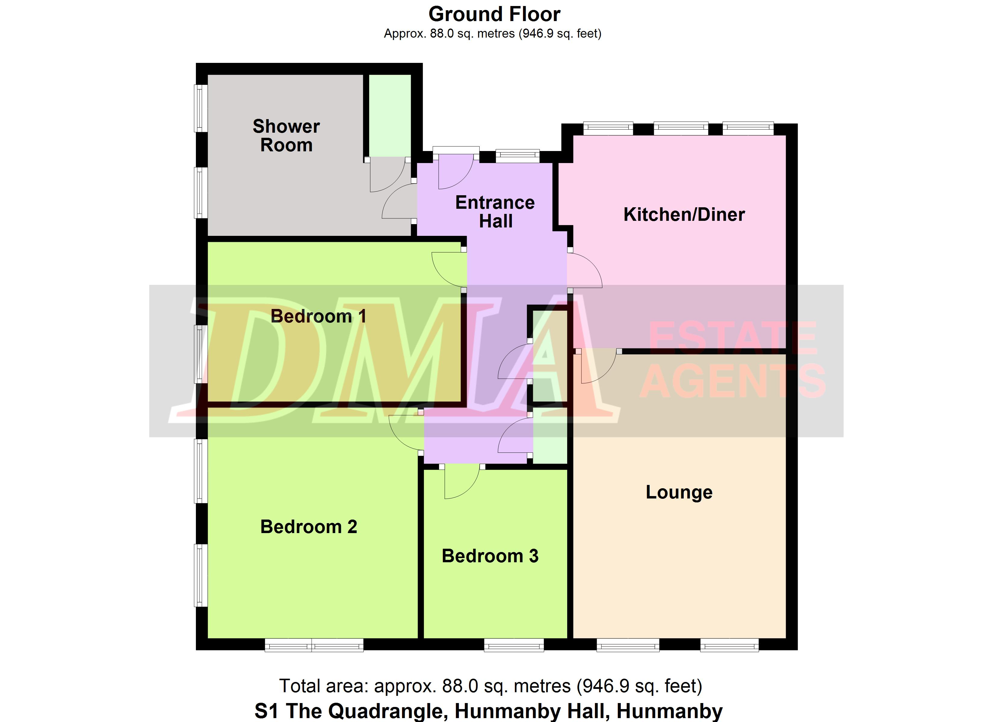 Spacious three bedroom ground floor apartment with over 900 square feet of accommodation.